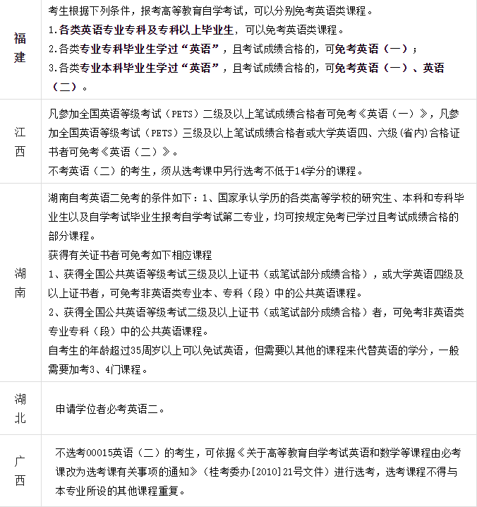 免考英语(二)在不同省份也有不同的要求,小聚已经帮大家整理好了。